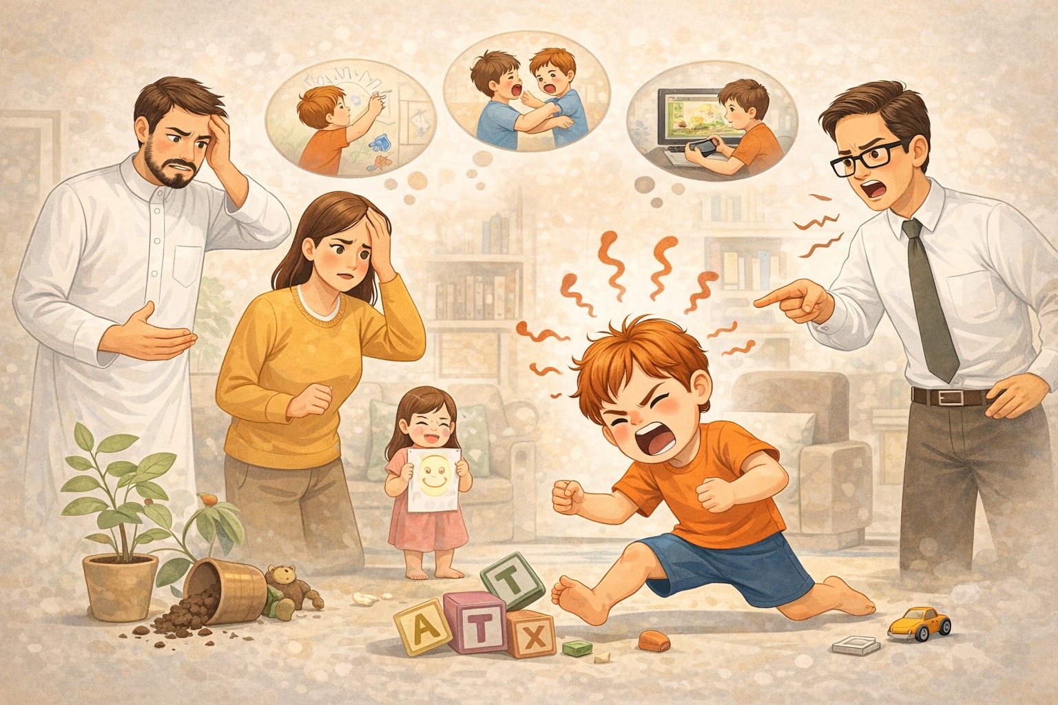 بسبب كثرة الإخوة مثلًا، أو كثرة مشاغل الوالدين، فالطفل يعاني من جوع الاهتمام ويسعى للفت الأنظار إليه